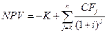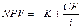 В инвестиционной практике достаточно часты случаи, когда инвестиции осуществляются один раз, как правило, в начале проекта. Для разовых инвестиций выражение для NPV упростится и примет вид: