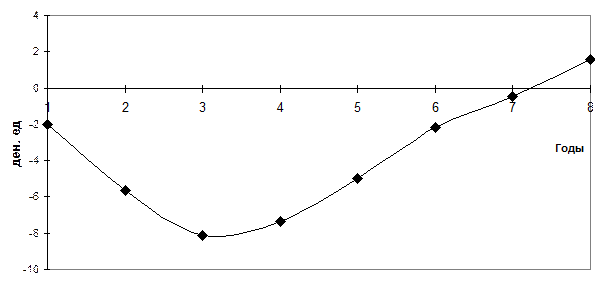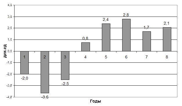 Рис.4.2. Динамика дисконтированной стоимости денежного потока по годам