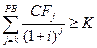 В этих выражениях искомой величиной, т.е. сроком окупаемости, является PB. Она определяет количество слагаемых в рассматриваемой сумме. Нахождение срока окупаемости производится последовательным добавлением слагаемых в сумму.