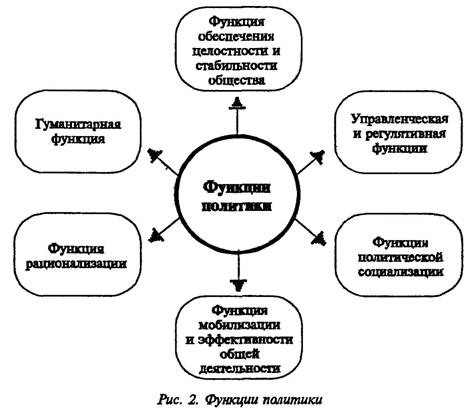 В современных обществах политика выполняет следующие наиболее значимые функции, без которых они не могут развиваться нормально: