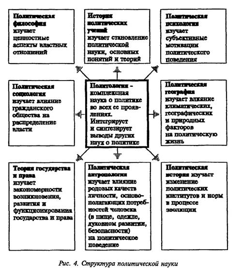 Современная политология является многоотраслевой дисциплиной, включающей ряд направлений политологического знания: политическую философию, политическую теорию, политическую социологию, политическую антропологию, политическую психологию и т. д.