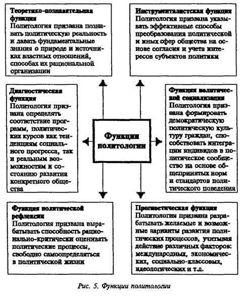 Во-первых,она способна диагностировать состояние общественного развития через выявление существующих групп интересов и определение их соответствия тенденциям социального прогресса. Во-вторых,осмысление тенденций общественного развития позволяет выработать эффективные механизмы интеграции индивидов в политическое сообщество и обеспечить реализацию общественных и личных интересов. В-третьих,вооружая индивида социально-политическими знаниями, политология помогает ему понять логику общественной эволюции и выработать рациональные и эффективные пути сознательного участия в политиче-