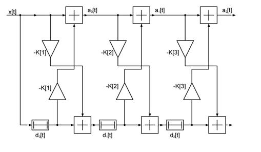 На рис. 3.7 показана схема трехзвенного РФ долговременного предсказания.