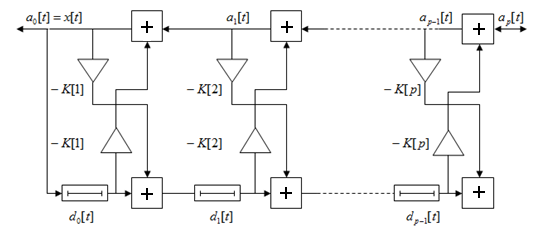 Обеляющий и формирующий решетчатые фильтры обратимы. Если на вход обеляющего РФ подается коррелированный случайный процесс, т. е.