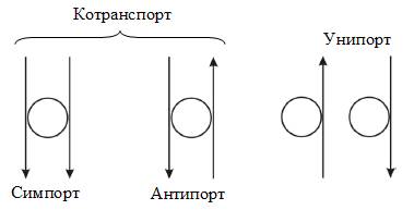 Котранспорт относительно направления подразделяют на симпорт и антипорт. При симпорте осуществляется однонаправленный и одновременный транспорт, а при антипорте – одновременный, но разнонаправленный перенос веществ.