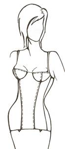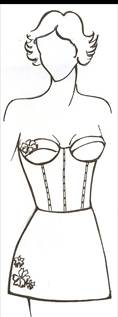 Корсет – корсетное изделие жесткой формы, плотно охватывает туловище от нижнего основания грудных желез до подъягодичных складок и предназначено для придания стройности фигуре и для крепления чулок.