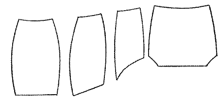 · Чашки квадратной формы состоят из трех деталей, одной верхней и двух нижних. Такая форма чашек немного уменьшает естественный размер грудных желез и рекомендуется для женщин с размерами 95-110 см.