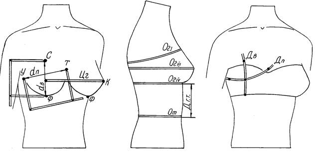 Для конструирования изделий бюстгальтерной группы необходимы следующие измерения (рис.14):