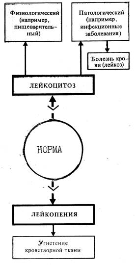 Уменьшенное количество лейкоцитов (лейкопения) наблюдается при угнетении кроветворной ткани, некоторых заболеваниях – паратифе телят, чуме свиней, при поражении лучистой энергией. В этих случаях наблюдаются существенные изменения и в лейкограмме, т.е. в перераспределении числа разных форм лейкоцитов. Определение количества лейкоцитов и выведение лейкограммы для врача имеет большое диагностическое значение. Живут лейкоциты несколько дней, даже часов и только Т–лимфоциты – месяцы и годы. Разрушаются в печени и селезенке.