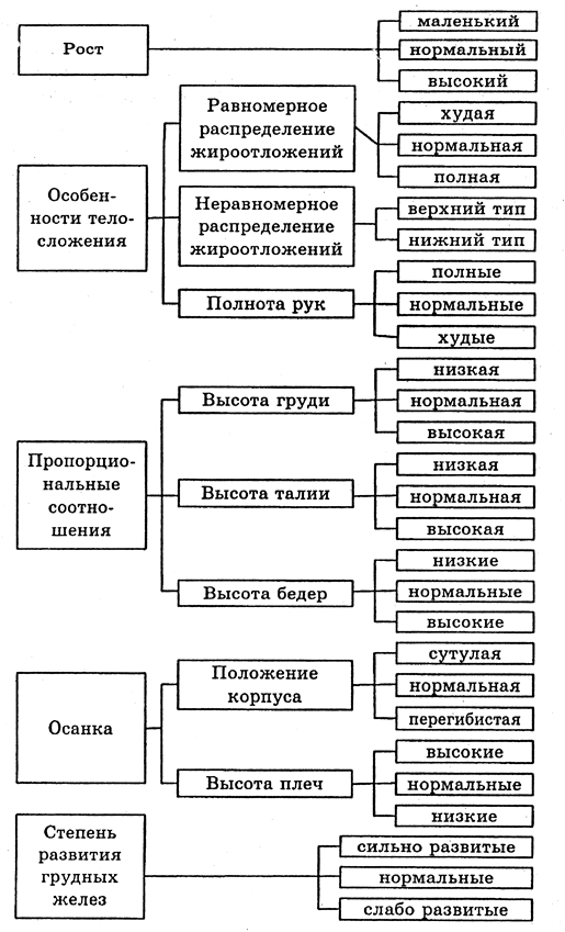 Особенности внешнего облика заказчика, учитываемые при выборе моделей одежды приведены в классификации комплекции женских фигур (рисунок 3.8).