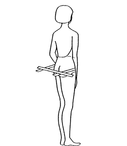 • руки должны быть опущены вдоль туловища, с вытянутыми пальцами и должны касаться боковых поверхностей бедра;