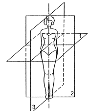 | Антропометрические плоскости соответствуют горизонтальной (1), фронтальной (2) и профильной (3) плоскостям | |