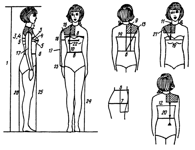 | Рисунок 3.14 – Схема обмера фигур женщин при конструировании одежды |