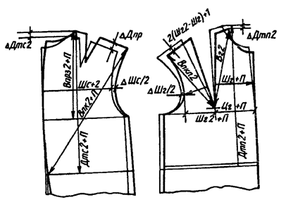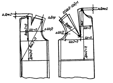• смещают вверх основание горловины спинки на величину разницы в измерениях Дтс2 конкретной и типовой фигур;