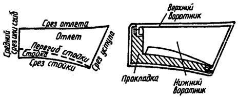 Основные части и срезы стояче-отложного воротника, а также состав его пакета приведены на рисунке 7.2.