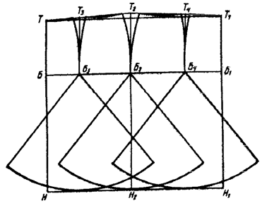 Через точку Б2 проводят вертикальную линию, на пересечении которой с линией низа ставят точку Н2.