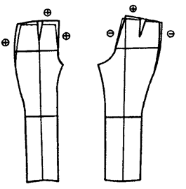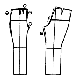 Для фигур с выпуклыми бедрами и плоскими ягодицами в конструкцию вносят следующие изменения (рисунок 8.30):