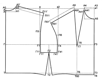 • длина оката соизмеряется лишь с вертикальными участками проймы от П11'до точки Г11' на спинке и от точки П'51 до точки Г'41 на переде: