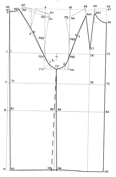 Линия проймы спинки проходит через точки А21, 6, П31, 1', Г2'.