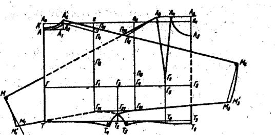 Плечевую вытачку, как правило, не проектируют, а нагрудную сокращают до минимальной величины или также не проектируют, т.е.