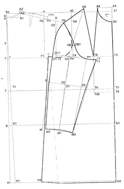 Положение боковой линии переда 1'Н4 внизу: Н3Н4=Г31 + (2,0 - 3,0) см.