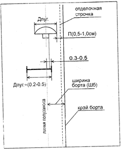 При открытой тесьме-молнии край борта смещают в сторону проймы на ширину открытого ее звена.
