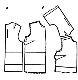 • вершина бокового среза переда поставлена выше вершины бокового среза спинки (переднюю деталь опускают вниз, рисунок 11.3, а);