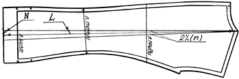 где N – величина, откладываемая по линии низа лекала детали; n – допускаемая величина отклонения; L – длина линии направления нити основы
