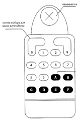 | Курсор дигитайзера представляет собой пульт, на котором размещается перекрестье для совмещения с контурами и шестнадцать кнопок (рисунок 13.5). Перед началом ввода контуров детали вводятся общие данные о детали с помощью курсора и меню. Они включают: имя детали, размер изделия и другие сведения по желанию пользователя. На экране дигитайзера высвечиваются подсказки о дальнейших действиях и вся вводимая информация. | |