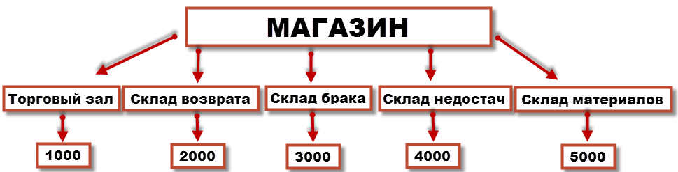 C точки зрения материального учета завод в SAP должен разделяться на склады. Склад является элементом организационной структуры магазина, именно на уровне склада происходит количественный учет товаров, материалов. Каждому заводу может быть присвоено несколько складов. Эти склады также имеют свою кодировку в SAP: