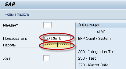 Если Вы трижды введете неправильное имя пользователя и/или пароль, Ваш доступ будет заблокирован системой и может быть разблокирован только службой SAP-help.