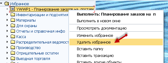 3. Выберите в контекстном меню: Удалить «Избранное»