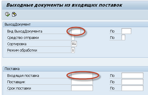 Для выгрузки входящей поставки в ТСД воспользуемся транзакцией VL75. Здесь необходимо заполнить два поля – «Вид выходного документа» и «Входящая поставка»: