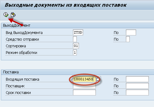 Указываем номер входящей поставки и нажимаем на пиктограмму