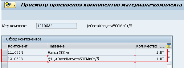 Открывается «Обзор компонентов», где можно просмотреть состав комплекта. Комплект должен состоять из содержимого и банки (бутылки).