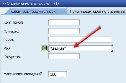 В поле Имя вводим через звездочки наименование поставщика, нажимаем на