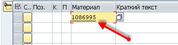 В столбце «Материал» указываем товар для возврата, вводим номер материала