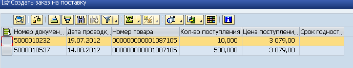 Выделяем нужное поступление, нажав на серый квадрат (выделен красным цветом).