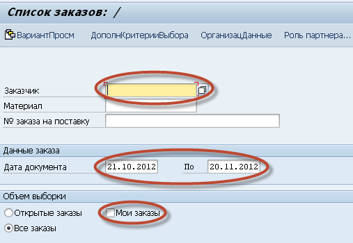 Здесь можно ограничить критерии, задав параметры, необходимые для поиска нужного заказа:
