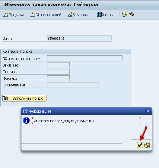И, как бы, «проваливаемся» в сам заказ. При этом программа выдаст сообщение: