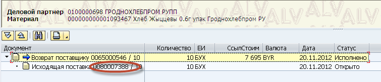 Это обозначает, что к данному заказу существует исходящая поставка. Нажимаем на галочку и попадаем непосредственно в сам заказ. Чтобы увидеть номер исходящей поставки, нажимаем на пиктограмму