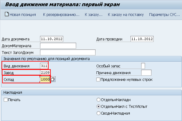 При перемещениях со склада на склад всегда указываем вид движения 311.
