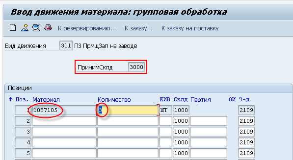 Прежде чем создать документ списания, необходимо переместить товар со склада 1000 на склад 3000, для этого используется транзакция MB11.