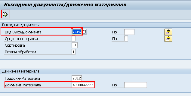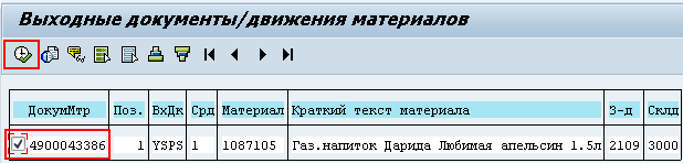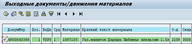 Документ материала – вводим номер документа на 49…, который был создан в транзакции MB1A.