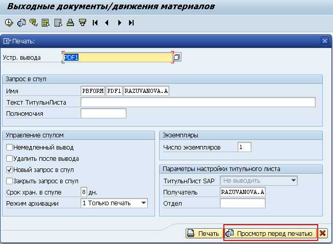 Появится окно для вывода документа, в котором нажимаем «Просмотр перед печатью».