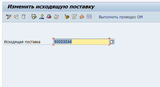 На селекционном экране набираем номер исходящей поставки на 8…, созданной офисом: