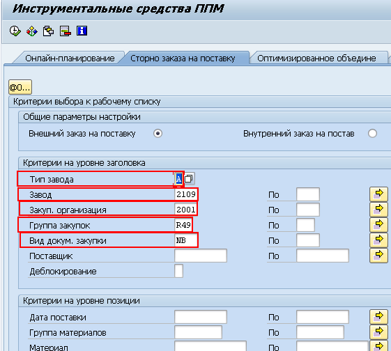 Внешние заказы на поставку – для отбора заказов по сторонним поставщикам;