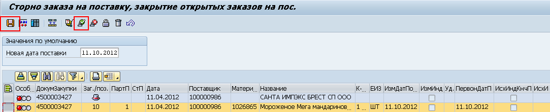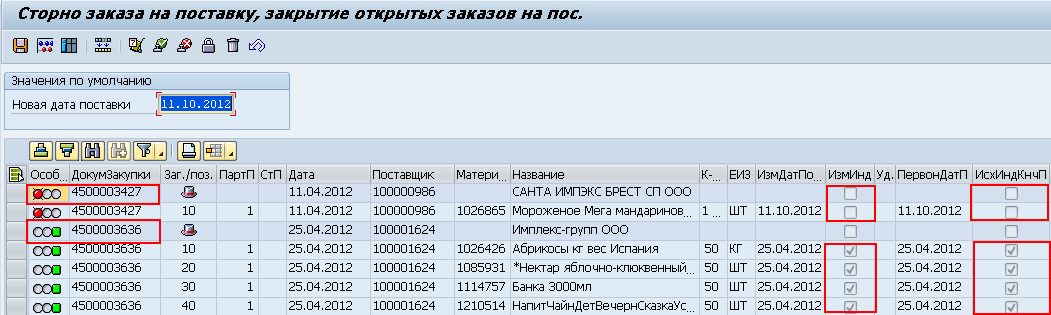 Для проставления статуса Конечная поставка на заказ, необходимо выделить строки, и нажать кнопку Установить индикатор конечной поставки