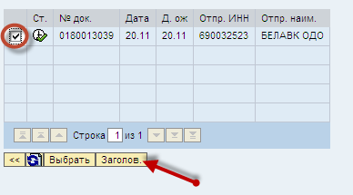 Далее необходимо поставить галочку напротив входящей поставки и нажать «Заголовок»: