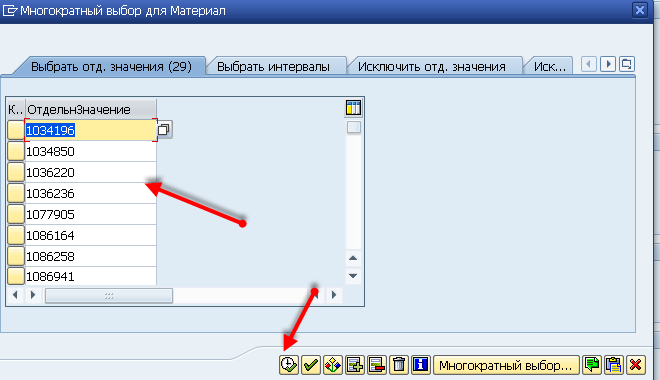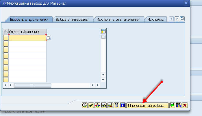 Появится диалоговое окно для поиска значений, в котором нужно нажать на кнопку Многократный выбор.
